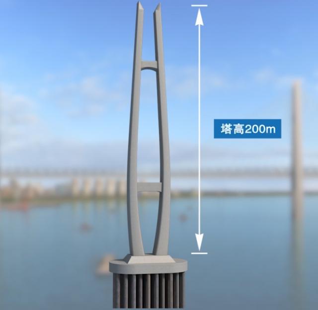 北航道桥主跨桥作为大桥三大航运孔桥之一, 450 米饭,主塔倒下 Y 钻石钢筋混凝土结构,塔高 200 米饭,建成后就是全球最大跨度无轨双塔双索面钢箱 - 钢桁架组合梁斜拉桥。