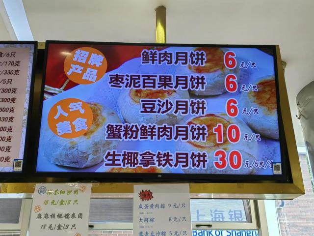 “早上在对面买酱菜,顺便带一盒鲜肉月饼回家。今天,人们很好。再过几天,人们就会开始增加。每年都是这样。”张阿姨说。