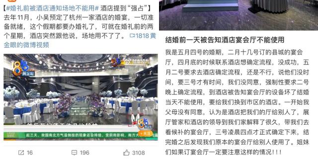 据了解,不仅仅是唐女士发生了类似的事情,还有在婚礼前夕被酒店通知换婚房的夏女士,以及婚礼前夕酒店关闭紧急换场地的倪女士。