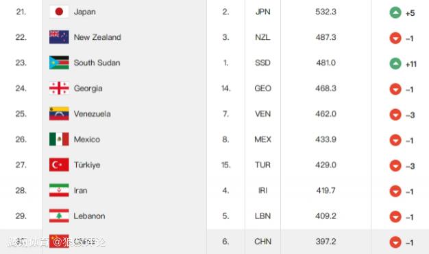 参加巴黎奥运会的日本男篮上升 5 名,飙升到 21 位置上,中国男篮排名下滑,排名第一。 30 的位置。