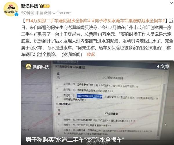 闹心!男士称购买丰田“水淹二手车”改为“泡水全损车”
