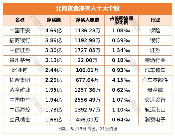 据 21 投资通智能监控,8 月 15 日本,北向资金净买入 122.06 其中沪股通净买入亿元 88.65 一亿元,深股通净买入 33.41 亿元。