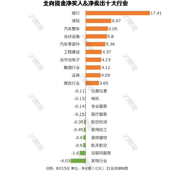 就净买入额度而言,北向资金增加了。 88 个别行业,其中银行居首,净买入金额达到 17.41 亿元,其次是保险业,净买入。 6.97 亿元。