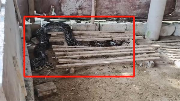 三米长的巨蟒潜入农民鸡棚,吞下一只鸭子 吃饱后休息,被一招活捉。