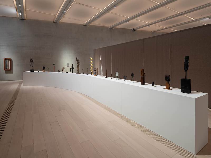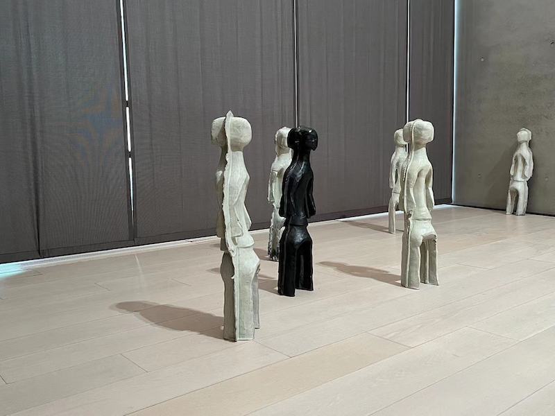 西斯特艺术家• 在西非穆木耶族中,盖茨设计了10尊白釉粘土人像,其造型与人形木雕相关联。在当地的物质文化传统中,它们被视为家庭空间的守护者,也是人们与世界各地形成交流的物质媒介。日本艺术家挂井五郎也以当代方式重新思考原始艺术的气场精神。挂井五郎一组雕塑摆放在展柜上,大大小小的雕塑高低错落,相互呼应,似乎是艺术家幻想中的神秘王国。在他的创作生涯中期,他走遍了巴西、墨西哥等地,深入探索了中南美洲的原始艺术,深深地吸引了他粗糙、简单、充满活力的创作风格。回到日本后,他放弃了曾经熟练掌握的日本学术艺术规范,用木材、纸板、金属等日常材料探索灵性世界。