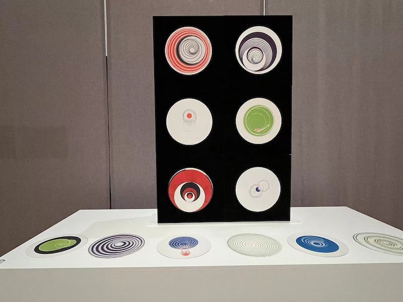 展览厅里,最著名的是马塞尔·杜尚的作品《旋转浮雕》。杜尚首次在1935年的巴黎国际发明博览会上展示了这些轮盘。如果轮盘以每分钟33-1/3的速度旋转,就会产生一种深度感的幻觉,它们从二维纸片变成动态3D动画。这一有趣的光学实验表明,杜尚对视觉错觉机械艺术产生了深刻的兴趣,并回应了当时艺术界追求精确性和稳定性的视觉中心主义趋势。