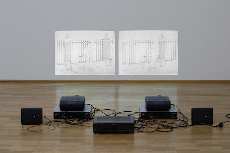 弗朗西斯·埃利斯,《时间是心灵的把戏》,1999年,由艺术家和Galerierierier拍摄的双频动画设备(色彩和声音),30秒(循环播放)。 Peter Kilchmann, Zurich/ Paris 惠允