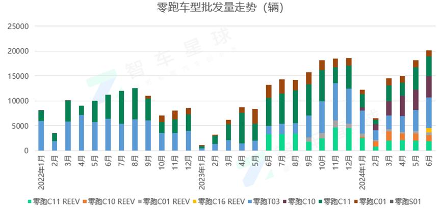 在这些车型中,2024年C10也在第二季度完成了产量上坡,三个月纯电。 累计批发增加16,249辆,继T03和C11之后,占零跑第二季度总批发量的30.5%,正式成为第三款主力车型。