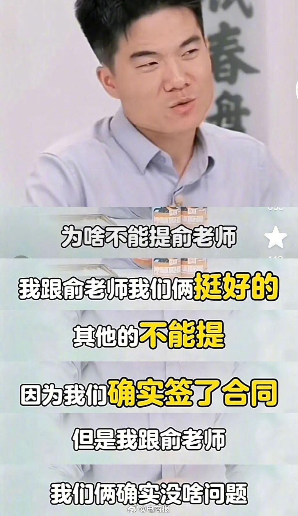 不过,听了这话的董宇辉并没有回避,还反问:“为什么不能提俞老师?”