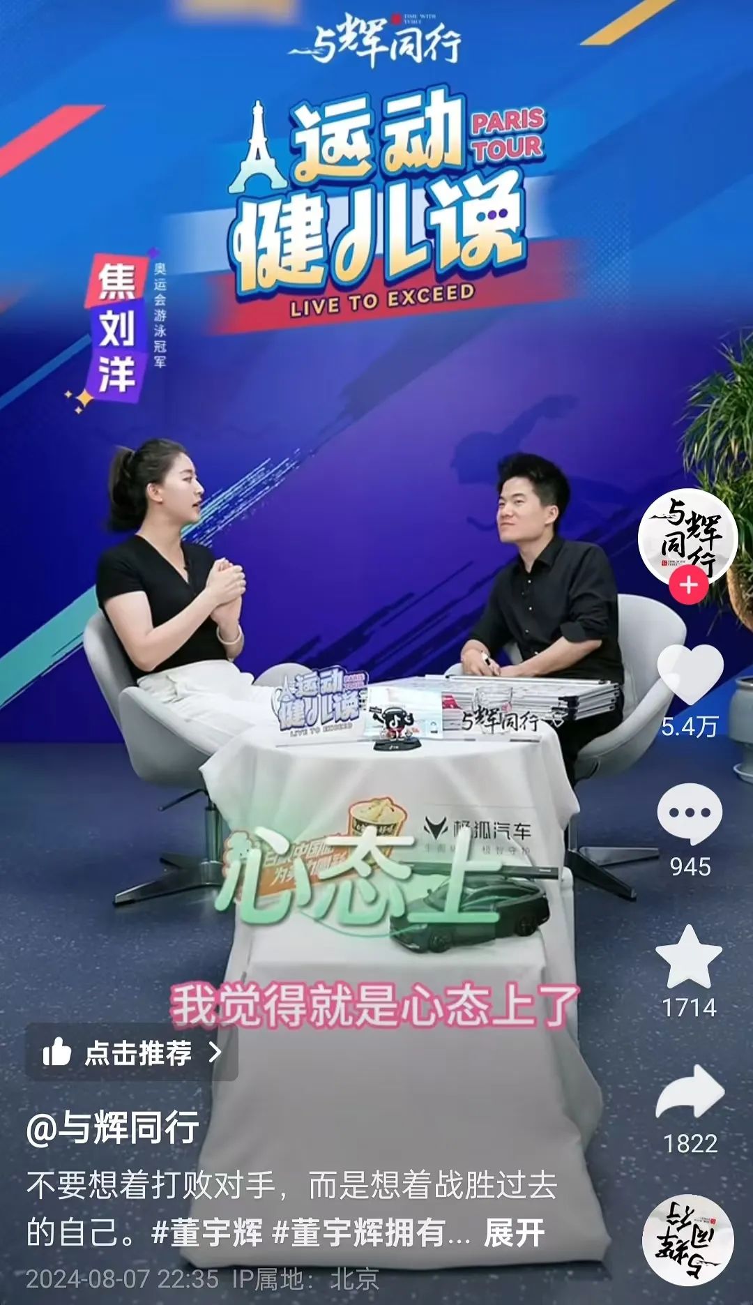 事实上,在宣布离职后的十几天里,董宇辉本人并没有直播卖货,而是投身于录制了《运动员说》系列采访节目,采访了杨倩、郎平、邓亚萍等体育界的优秀人物。