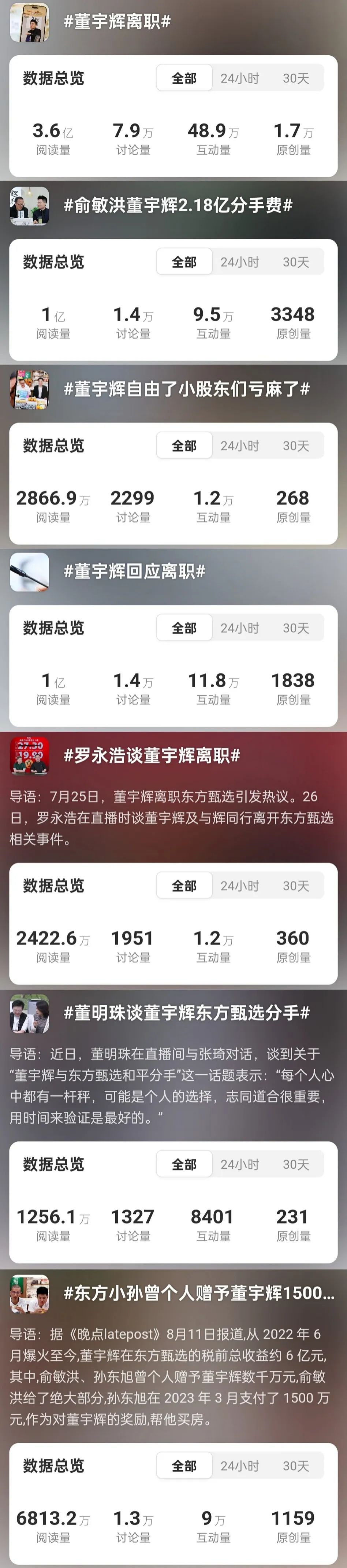 在此期间,与董宇辉、俞敏洪有关的热门话题确实不少。