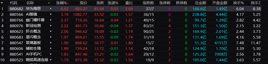 盘面上,猴痘和AI眼镜概念股大幅上涨,消费电子、医疗器械、光学光电子板块涨幅居前,工程服务、房地产服务、贵金属板块跌幅居前。