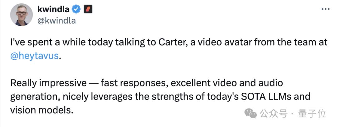 AI视频研究公司Tavus的一名员工卡特的形象定位,以幽默的方式回应,同时也很有帮助。