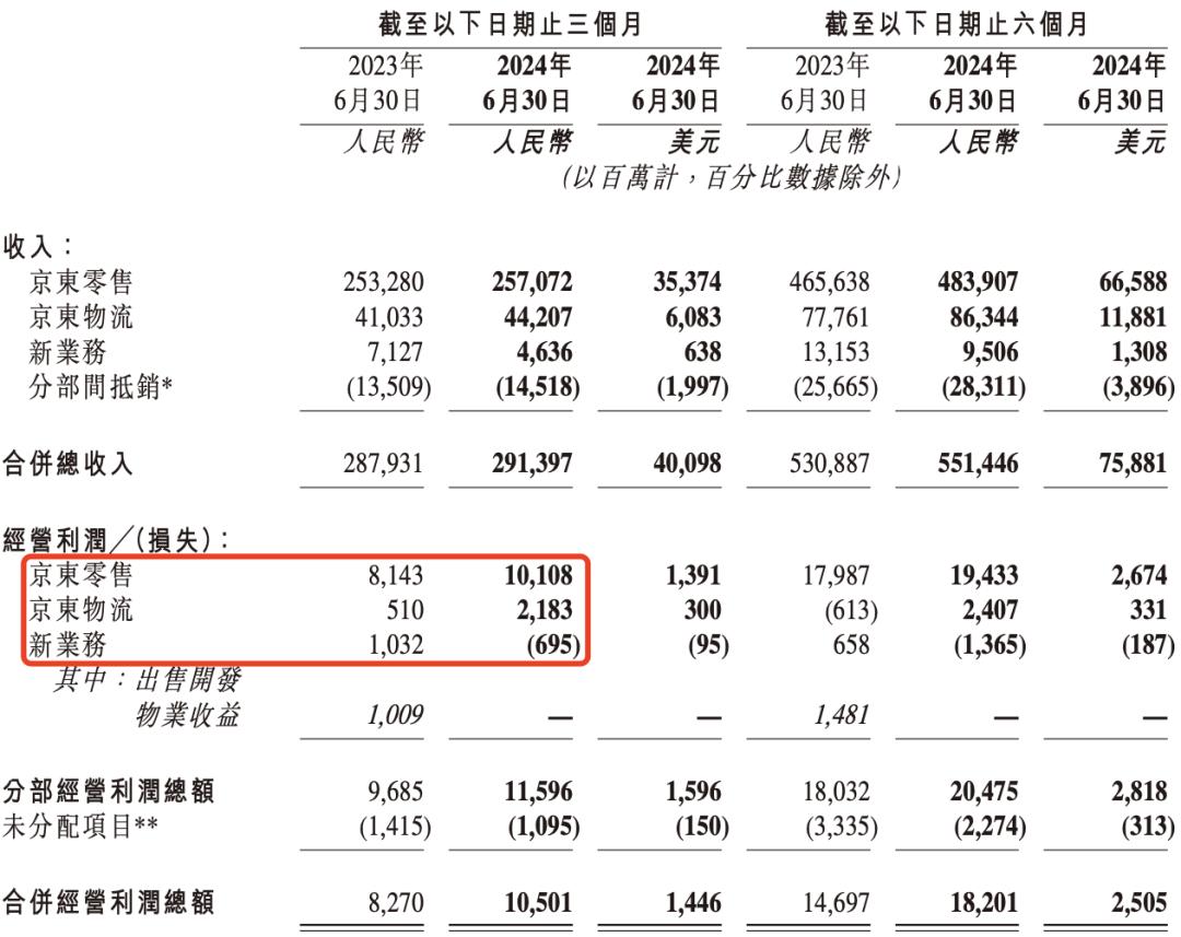 具体到京东三大业务,京东零售保持盈利,京东物流收入增长328%。新业务(达达、京东产发、京西、海外业务)由上季度的盈利转为亏损,“但新业务板块不大,亏损不影响市场”,陈丽说。根据财务报告,新业务收入仅占1.5%。
