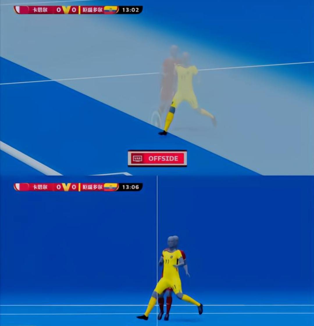 为保证公平性,该技术可以直接在球场大屏幕上演示3D动画,并解释为什么要越位,而不是直接给出一个回望视频。