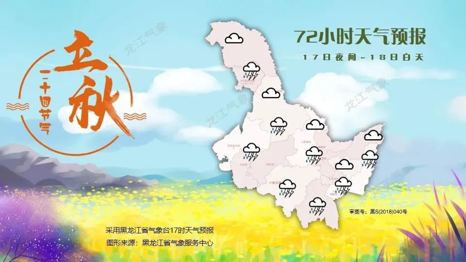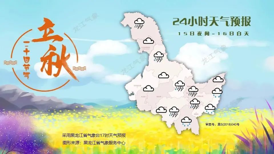 16日晚至17日白天:大兴安岭南部、黑河、伊春、齐齐哈尔北部、绥化北部、双鸭山东部、鸡西部、七台河、牡丹江东部阴天有阵雨或雷暴,其他地区有时晴天多云。