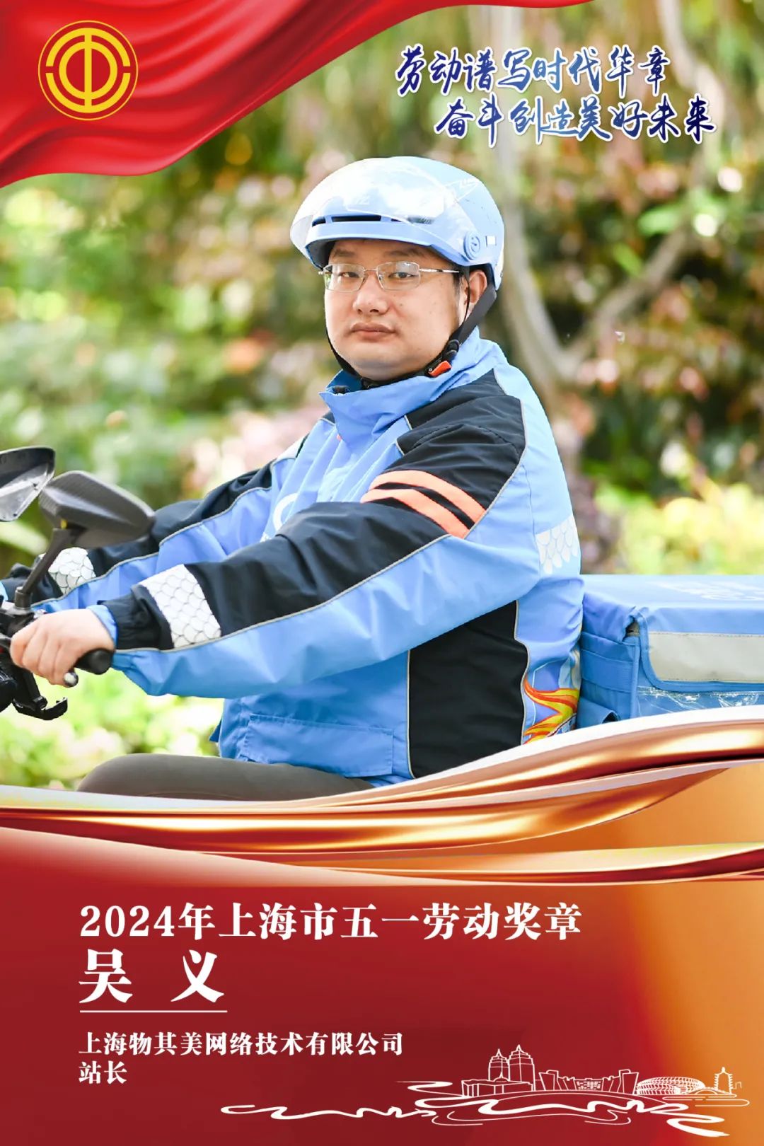 吴义的名字在这群勤劳的骑手中显得格外耀眼。他从2016年加入饿了么,到2017年晋升为站长,凭借自己的实际行动和不懈追求,获得了2024年上海市五一劳动奖章。