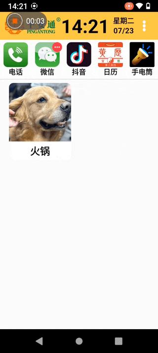 平安通手机除了一键视频聊天外,还支持定制一些长驻应用,比如爱看抖音的爷爷奶奶,能够在首页把抖音固定好 App。