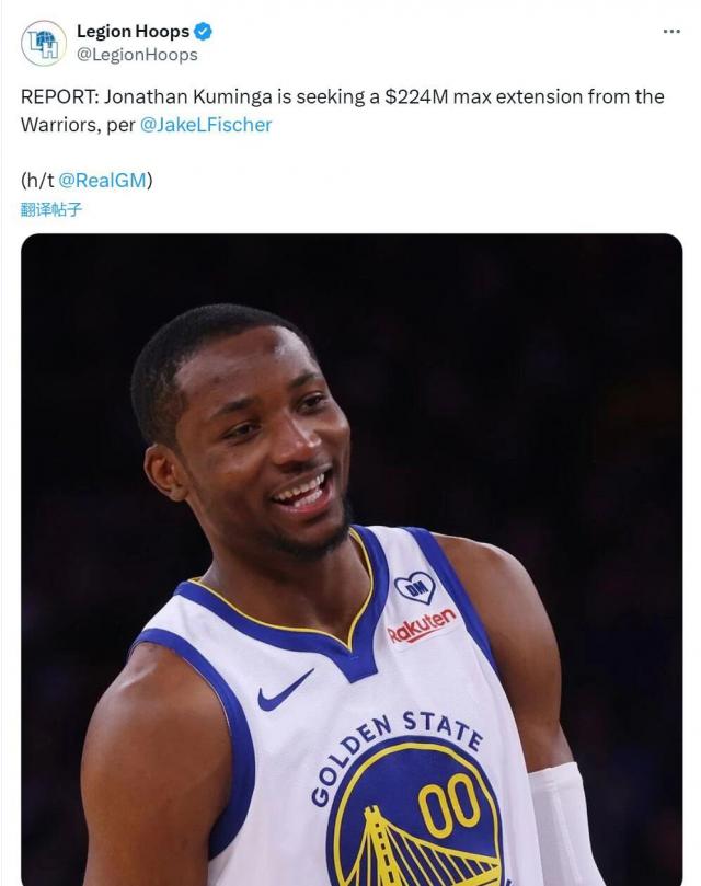众所周知,库明加是今年休赛期勇士多次价格马尔卡宁的筹码之一。勇士知道库明加想要一份大合同,球队很难满足他,不如用他换马卡。跟随马尔卡宁 5 年 2.38 亿提前续约爵士,勇士交易告吹,只能再次与库明加续约。