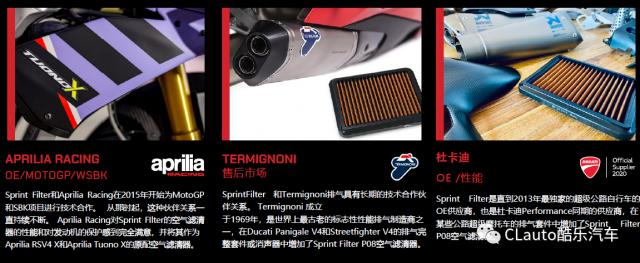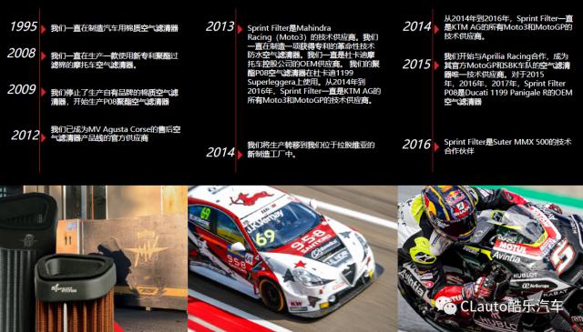 1952 年诞生的 SPRINTFILTER 它是世界上高性能空气过滤器和特殊进气产品的优秀品牌。目前,它为各种高性能房车和高性能摩托车提供类似的WTCR 和 MOTO GP空气过滤品牌供应商。