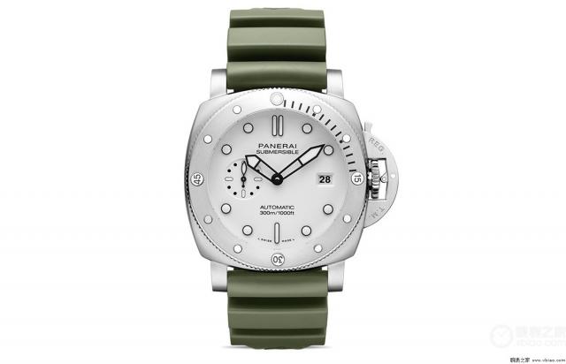 手表评价:第三款是沛纳海手表,是很多手表朋友眼中的硬汉标准。考虑到以上两款手表的颜色比较平静,我们最终选择了这款配色新潮的潜行系列手表与大家分享,并将其组合在手腕之间,既带来了力量感,又呈现出一丝精致的魅力。图中这枚 Submersible 拥有一系列潜行腕表 44 mm尺寸,结合磨砂精刚表壳,标志性磨砂精刚单向旋转表圈附有刻度标志,另一侧是非常显眼的护桥设备。很多专注于沛纳海手表的手表朋友特别喜欢这种拥有沛纳海专利的显著设计。色调方面,手表选用白色表盘与军绿橡胶表带相结合,简洁和谐的盘面布局使读起来更清晰。手表里面装着 P.900 配有自动上链机械机芯 Incabloc ™抗震装置,单个发条盒,满弦后可提供 72 动力储存小时。