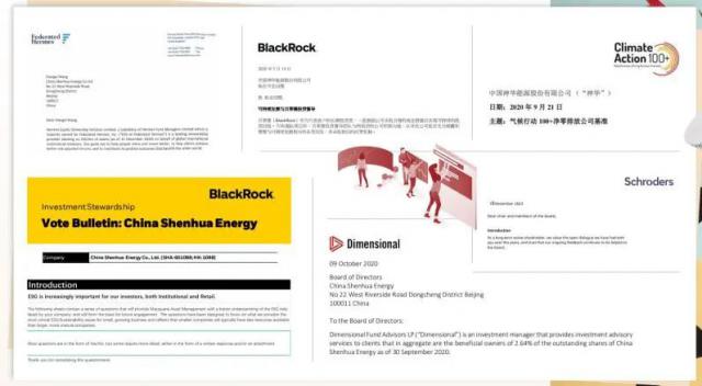 参加证监会、上市公司协会组织的中国神华与外部机构保持沟通交流。 ISSB 国际可持续披露准则研讨会和社会责任报告发布会积极回复贝莱德、荷米斯股权管理公司、气候行动 100 等待外部利益相关者来函,通过组织电话会议回应气候问题、董事会治理等问题,并对公司进行说明 ESG 近期治理工作的动态和长期规划安排得到了充分认可,中国神华在国际标准机制和中国式提升 ESG 在治理体系建设过程中,扩大了中国神华在中国的地位 ESG 标准领域的话语权,为了推动国内 ESG 提高评级可以借鉴经验。另外,公司负责 ESG 相关领导也加入了上市公司协会 ESG 专门委员会,在责任云公开课上授课,参与国有资产监督管理委员会的政策制定和案例研究。