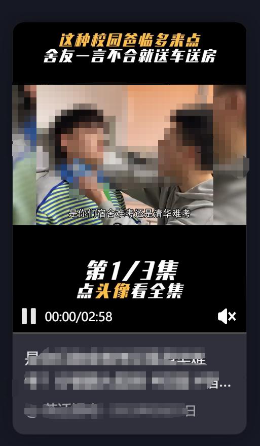 在这些视频中,“暴力”通常是主线。粗暴的语言、殴打、推搡、扇耳光、拉头发等。都被放大了。为了追逐流量,我们毫不犹豫地把玩梗校园欺凌作为一种醒目的引流方式,让沉重严肃的话题娱乐化——摄影师追逐点击量,观众记住夸张丑陋的表演和不可思议的情节。