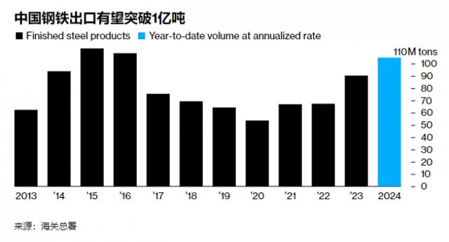 从 2021 从2000年开始,我们出口的钢铁产量一路上升。按照现在的节奏,今年我们的出口可能会超过。 1 亿吨。