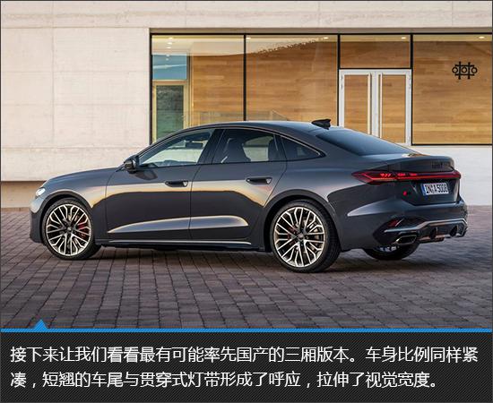 为何要用旅行车开始?因为奥迪的旅行车真的很漂亮,全新的奥迪 A5 Avant 再一次证明了这一点。自然,最有可能率先国产的,无疑是三厢版。全新奥迪 A5 轿车版的整体尺寸有所上升,长宽高为 轴距为4829mm*1860mm*144mm, 2900mm。未来国产,轴距有望再次延长,这样就可以直接与中大型车相媲美。