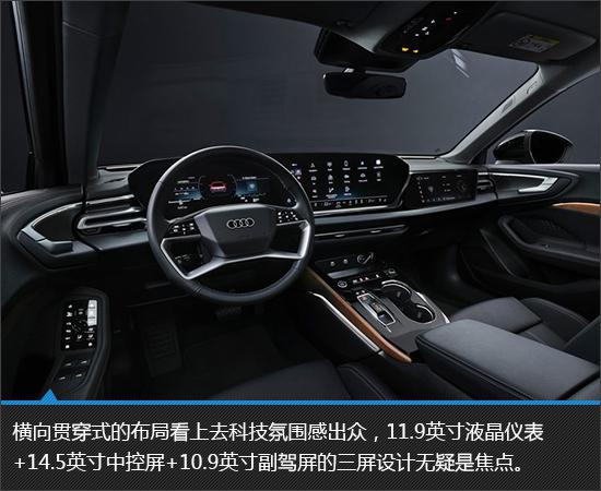 内饰部分还采用了全新的奥迪品牌家族式设计风格,配置与奥迪相结合。 Q6 e-tron 同样的" Digital Stage “信息娱乐系统,能提供更加现代化的视觉效果和操作体验。另外,为迎合当前主流,全新奥迪 A5 提供全液晶仪表 由多媒体中控屏组成的大尺寸 OLED 双联屏。对副驾驶的娱乐屏幕,需要选择才能获得。