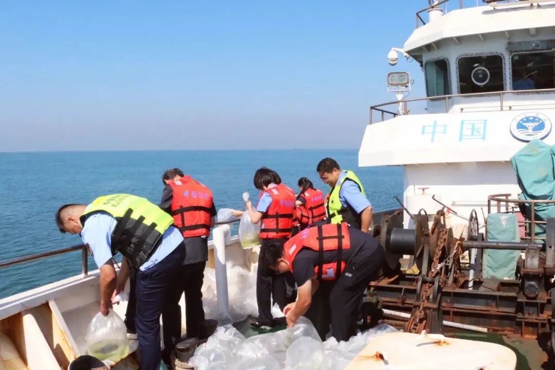 近日,日照市岚山区检察院、法院、海洋发展局联合开展了岚山水域公益诉讼生态补偿放流活动。