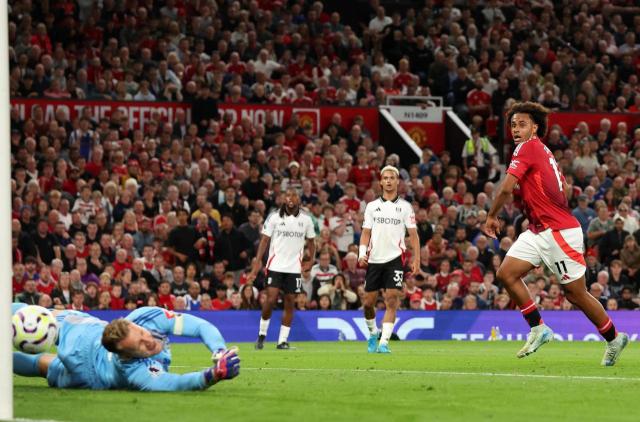 布鲁诺客串中锋 · 费尔南德斯,以及他身后的 10 号位梅森 · 在上半场和下半场,芒特都有破门的机会。 28 富勒姆门将莱诺在几分钟内传球失误,B 费切入右肋空档,得到球员直塞后起脚,但是球被莱诺挡住了。