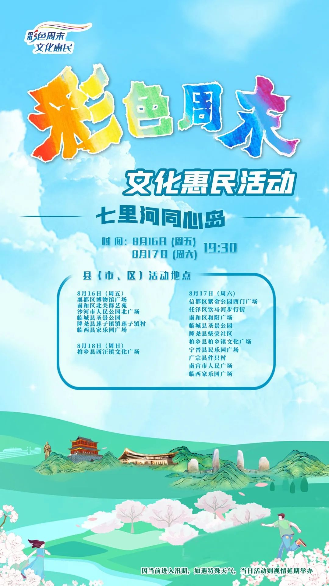 据悉,邢台市将以举办“彩色周末”文化惠民活动为契机,深入推进文化兴市战略,不断打造和推广“太行泉城、美丽邢台”城市品牌,推进“四型市政机关建设”,进一步激发干部群众努力工作,凝聚力量,为全市优质发展做出贡献。