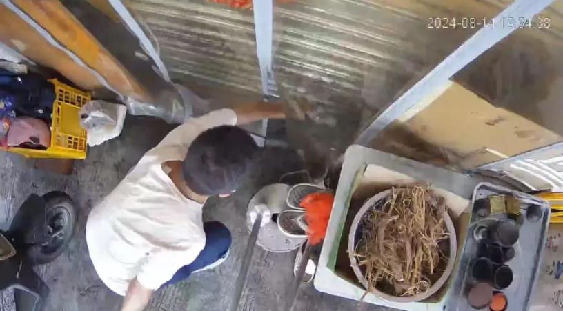 ▲在监控过程中,男子喷洒不明液体 受访者视频截图