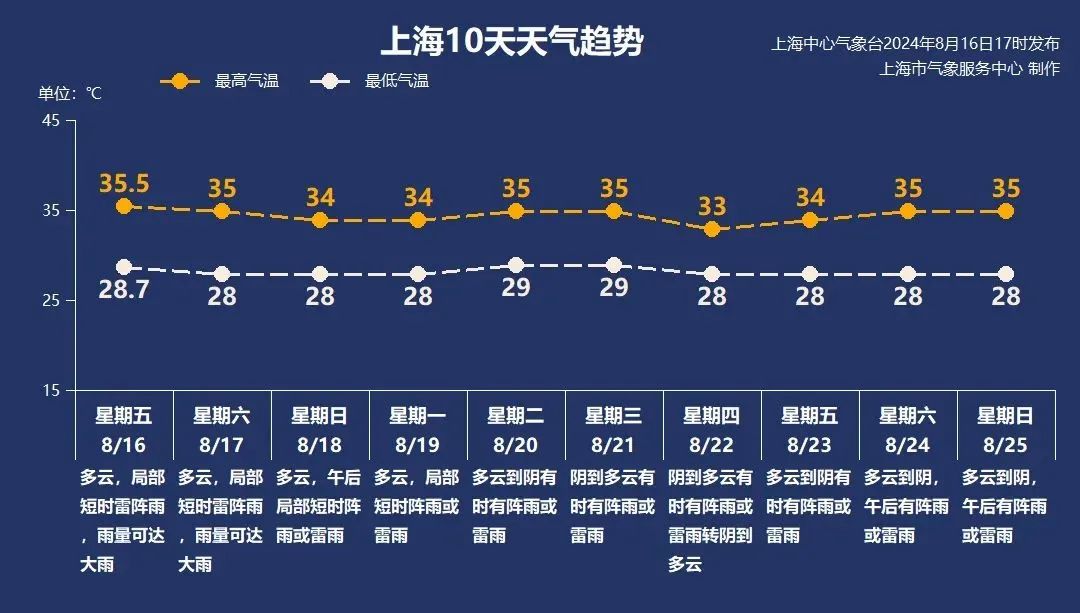 海上东部的气流带来不断变化的天空,据说每天都有雷雨。今天,一些地区的雨量仍然可以达到暴雨水平。旅行时准备好雨伞。请注意最新的预报预警信息。温度在28~35℃之间。请继续做好防暑降温工作。