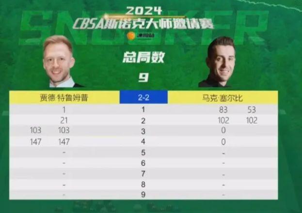2024 年 CBSA 上个赛季,斯诺克大师邀请了溧阳站的另一场比赛。 5 冠军,本赛季又获得了上海大师赛冠军的“准度王”贾德 - 在和,特鲁姆普 4 世锦赛冠军“磨王”马克 - 在塞尔比的比赛中,单杆满分 147 分同时,以 5-4 险胜对手。