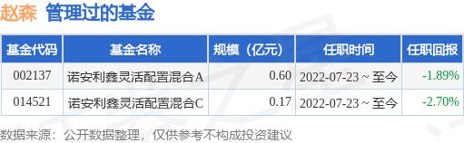 赵森先生:曾在华泰联合证券有限公司、华泰证券有限公司工作的中国国通、研究生、研究生,从事行业研究工作。2015 年 5 月入诺安基金管理有限公司,曾任研究员。2022 年 7 月 23 基金经理日任诺安利鑫灵活配置混合型证券投资基金。