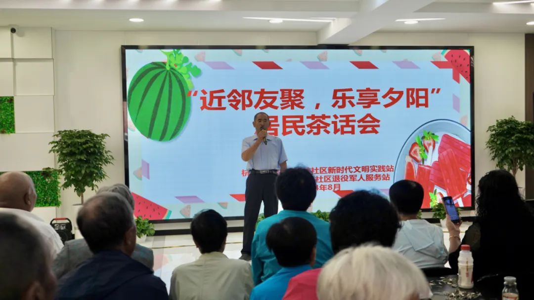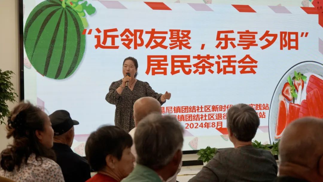 8月16日,杭锦旗锡尼镇团结社区新时代文明实践站和退役军人服务站在团结社区开展“邻居聚会”,旨在丰富社区居民生活,提高社区居民幸福感。 享受夕阳“居民茶话会活动,搭建相互交流的平台,让居民朋友聚在一起,为社区发展提出建议和想法,共同谈论社区和谐建设。