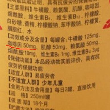 其中,咖啡因可以使交感神经兴奋,刺激大脑唤醒,促进血液循环,提高注意力,增强警惕性,从而达到消除疲劳的效果;牛磺酸可以快速降低胆固醇,调节钙离子运输,起到抗疲劳的作用;其他成分或多或少有利于消除疲劳。