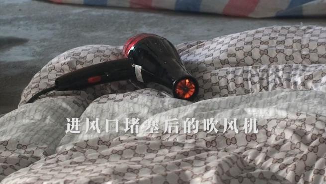 ▲不久,吹风机里喷出的火焰就能点燃被褥