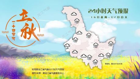 16日晚至17日白天:大兴安岭南部、黑河东部、伊春、齐齐哈尔北部、哈尔滨东部、鹤岗、佳木斯、双鸭山东部、鸡西阴天有阵雨或雷暴,其他地区有阴天。