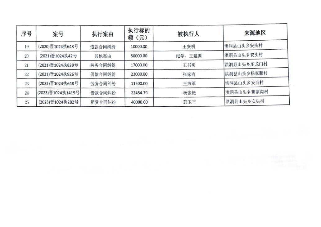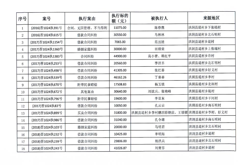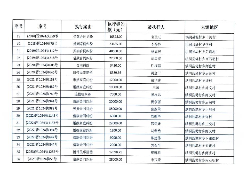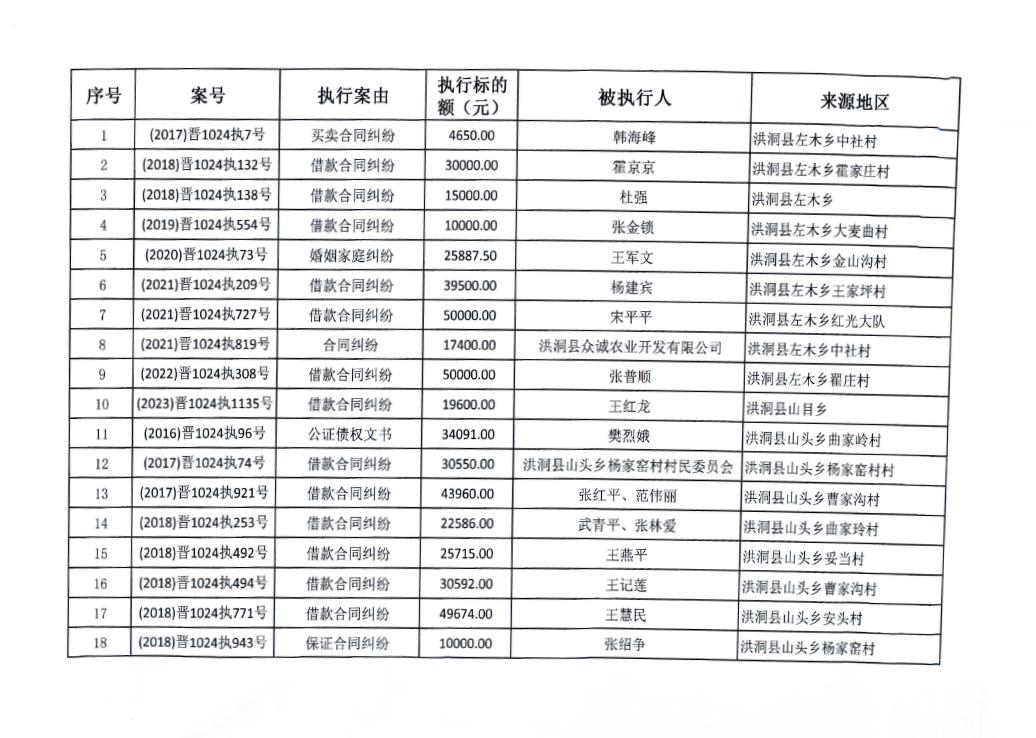 为提高人民群众的司法获得感,深入推进洪洞县人民法院“最终清仓”重点行动,最大限度保障胜诉当事人的合法权益,维护法律尊严和司法权威,依法打击规避、拒绝犯罪等违法行为,现督促以下被执行人主动履行义务。洪洞县人民法院发布如下通知: