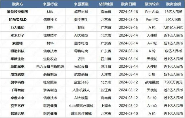 截至 2024 年 08 月 16 日 18:00,本周的融资事件共发生 93 起步(不包括并购、定增),较上周有所增强。 24 首先,融资总额约为 47.70 亿元(谨慎估计),较上周有所下降。 97.51 1亿元。本周融资金额在1亿元以上的融资事件 14 从上周开始,比上周减少了 1 起。
