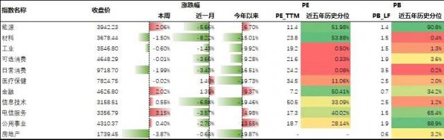 行业板块:上周 Wind 一级平均涨幅 0.02%,Wind 百大概念指数上涨比例。 58%。就板块而言,42% 该板块获得正回报,银行、通信、煤炭相对表现优异,各自上涨 2.66%,上涨 2.42%,上涨 1.95%,非银行金融、石油石化、电子等。也略有上升,而社会服务、建筑材料和房地产则明显走弱,各自下降。 3.08%,下跌 3.79%,下跌 3.91%。