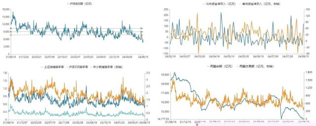 上个星期交易情绪持续上升,成交额从上周开始。 5000 上亿下方反弹至 6000 十亿美元周边。全周北向资金转移,周四和周五持续净流入超过 120 亿元。