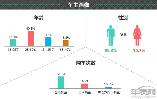 车主画像:男性用户居多。 第一次购买汽车的用户比例很高