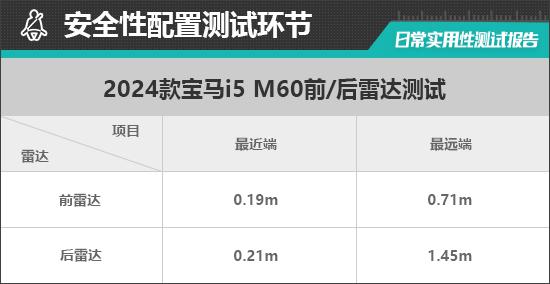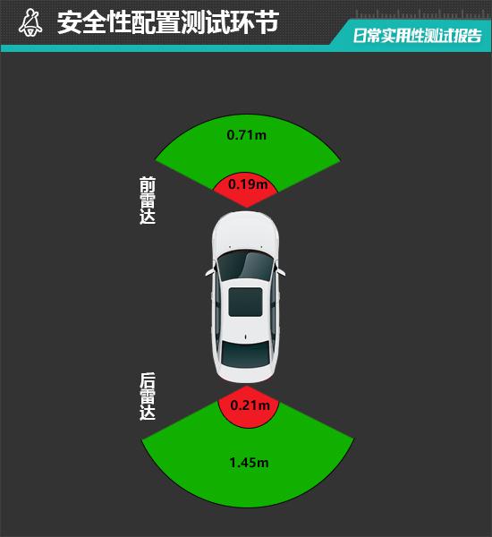 最远的前雷达可以在那里 0.71m 处处感应前方物体,雷达功率表现一般;持续蜂鸣提醒距离为 0.19m,与测试经验相差甚远。
