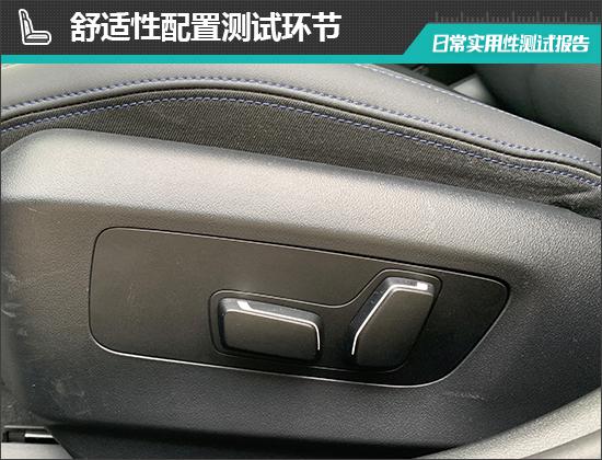 在座椅方面,评估车前座调整按钮位于座椅侧底部,调整按钮位置合理。主驾驶座配备了 2 组合座椅记忆,方便性好。另外,前排座椅也支持 3 档位加热及通风功能,舒适配置令人满意。