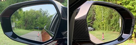 双曲率镜片用于评估汽车两侧的外后视镜。经过实际测量,左外后视镜的视野范围是 28.4 °,右外后视镜的视野范围是 27.9 °,测试结果均处于同级上游水平。