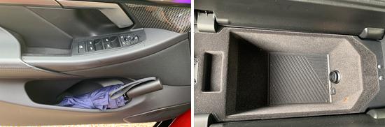 实际测量后,除了墨镜和挎包,其他固定物品可以合理放置在评估车前排的每个储物空间。需要注意的是,评估车门的储物空间较小,还有进一步改进的空间。